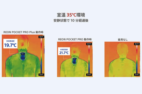 上記パッケージは、バッグなどに装着して外気温に合わせた動作もできるセンサーの「REON POCKET TAG 2 RNPT-2」も付属したセットとなっているが、これを同梱しない「REON POCKET PRO Plus RNPK-P1P」の市場想定価格は27,500円前後。REON POCKET TAG 2単体は3,850円前後。
