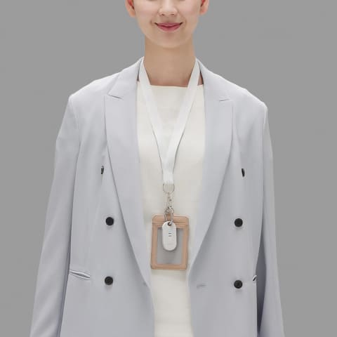 ウェアラブルセンシングデバイスのREON POCKET TAG 2は、従来比18%の小型化を実現し、デザインの改良により持ち運びやすくなった。