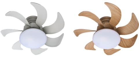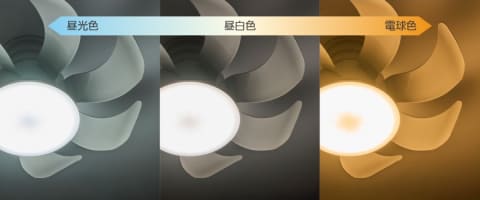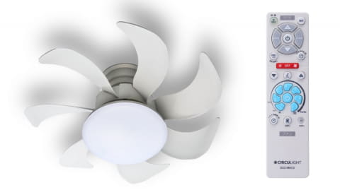 風量は6段階に加えて「ターボモード」を搭載し、正回転(下向き)/逆回転(上向き)の切り替えが可能。照明の明るさは7段階に調整でき、5段階の調色機能も備える。照明/ファンともにオフタイマー付きで、操作はすべて付属のリモコンで行なう。