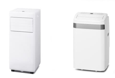 いずれもカラーはホワイト。窓パネル、隙間用アタッチメント、雨除けカバー、排気ダクト、排水ホース、リモコンなどが付属する。