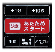 操作パネルもシンプルにし、「あたためスタート」「+1分」「解凍/半解凍」など、よく使う機能に絞っている。表示部は大型液晶で、調理モードや加熱時間、ワット数などがわかりやすいという。ワット数(高周波出力)は。500W/650W(50Hz/60Hz)と200W相当。自動メニューは、「牛乳/トースト/ゆで野菜/ハンバーグ/焼き鳥」など28種類を用意。