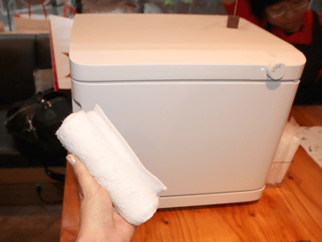 特許技術で、おしぼりのあたため・冷却時間が半分以下になった冷温庫