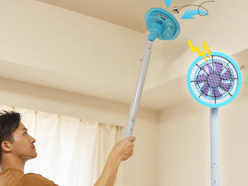 回転しながらLEDで時刻と温度を表示し、モバイルバッテリーでも駆動する「卓上小型扇風機」