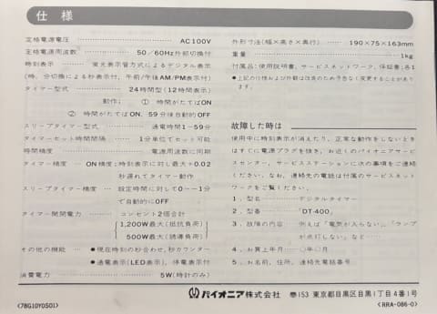 当時のタイマーはアナログが主流で、デジタルは後発(少数派)でしたが、タイマー利用の目的がエアチェックでしたので、デジタルの正確さを大きな魅力と感じ、アナログより少し高価でしたが、背伸びして購入した記憶があります。