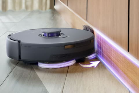 吸引力はパワフルな8,200Pa。水拭き時は本体のおしり部分を振りながら動く「テールスイング機能」で、モップが届きにくい場所にもアプローチする。汚れたモップは、充電ステーションで洗浄&温風乾燥でキレイに。あわせてステーションの洗浄まで自動で行なわれるため、モップを洗った汚れがステーションに付いたまま……といったことを防いで、メンテナンスフリーで使える1台だ。