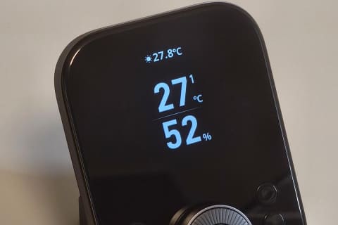SwitchBot ハブ3の魅力は、やはりディスプレイと操作インターフェースを搭載している点にあります。従来のハブ製品では操作にスマホアプリが必要でしたし、音声で操作するためにはスマートスピーカーが必要でした。SwitchBot ハブ3ならスマホやリモコンを探さなくても画面を見ながら操作できるので楽です。音声操作のようにつっかえて失敗してしまうこともありませんし、深夜や早朝など声を出しづらい時間帯でも簡単にスマートホーム機器を操作できます。