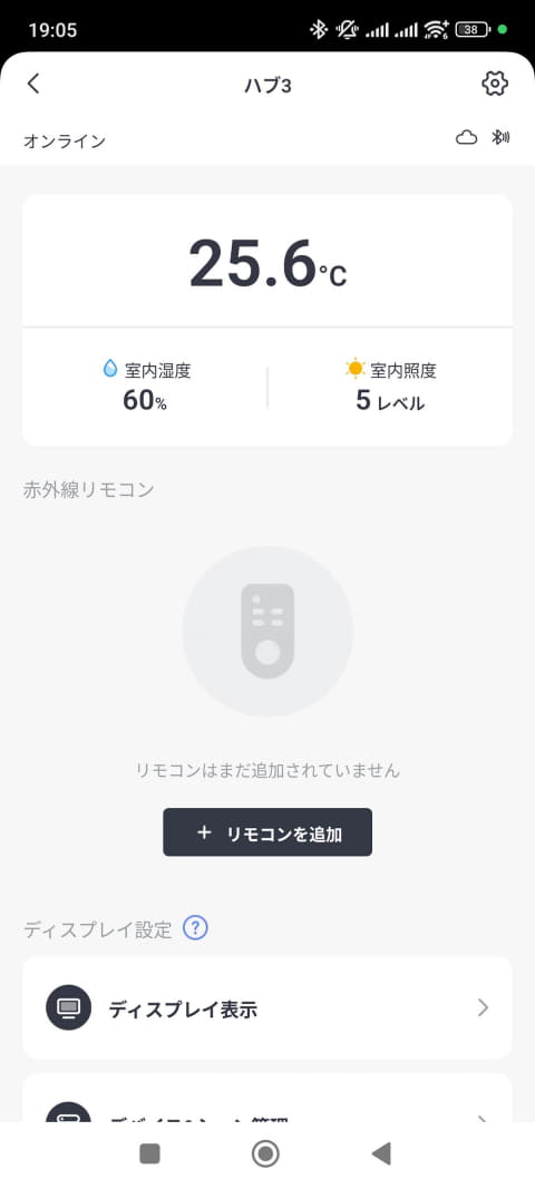 最後に、4つのタッチボタンをカスタマイズしてみることにしましょう。カスタマイズはSwitchBotアプリのSwitchBot ハブ3のホーム画面を開き、「ディスプレイ表示」メニューから行ないます。