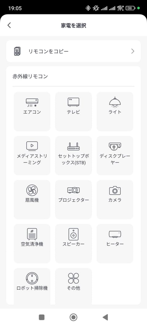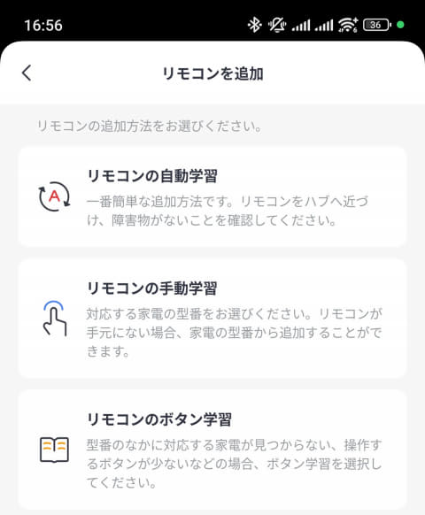 赤外線リモコンは「エアコン」、「テレビ」、「ライト」などカテゴリーが分かれているので、登録したいカテゴリーを選んで学習させます。10万1,000機種以上のリモコンが登録されている(2024年12月時点)とのことなので、ほとんどの機器が自動学習できるはずです。