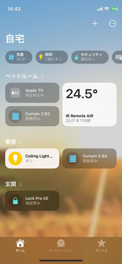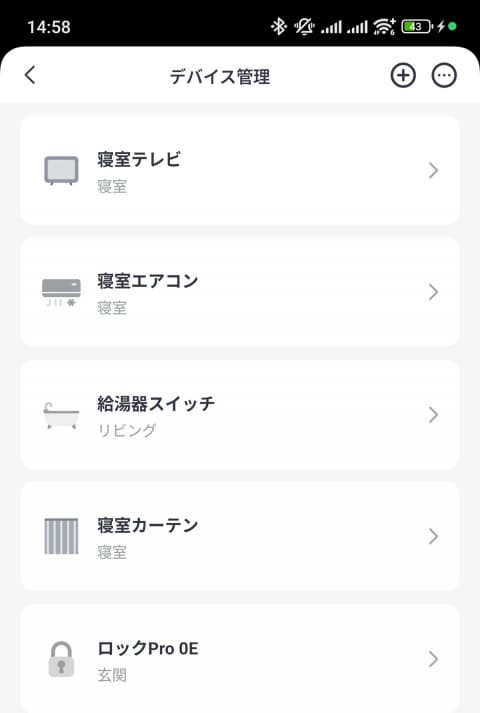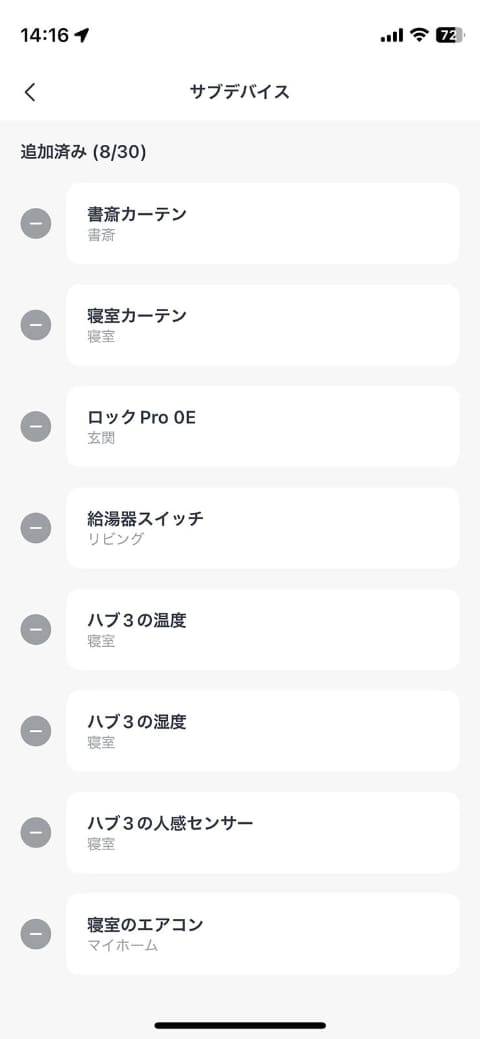 筆者の場合、玄関錠にはSwitchBot ロック Proを取り付けているほか、給湯器のお湯はりボタンにSwitchBot ボットを取り付け、寝室と仕事部屋のカーテンにはSwitchBot カーテン3を取り付けていますので、これらを登録することにしました。