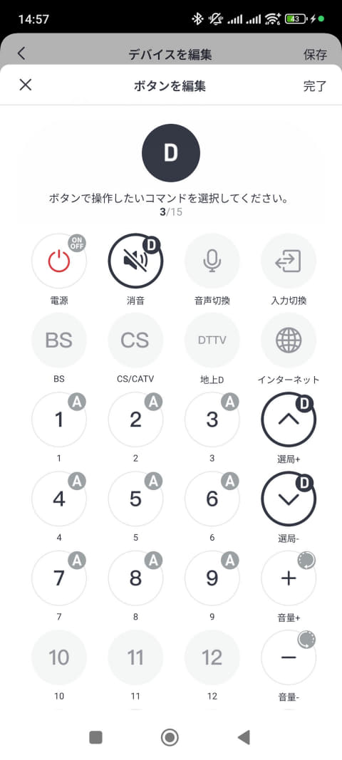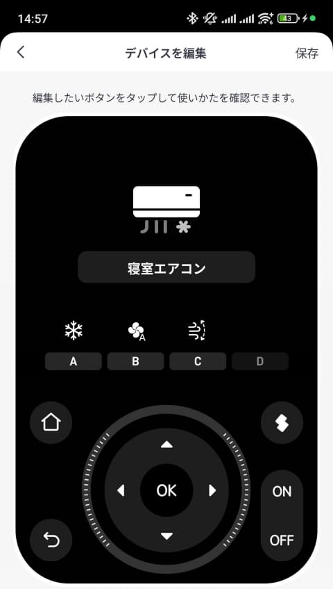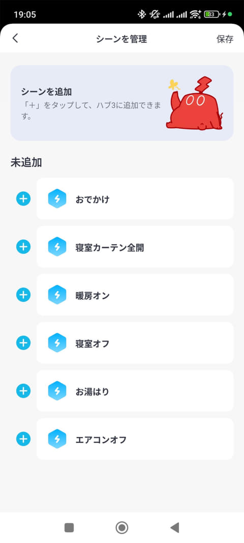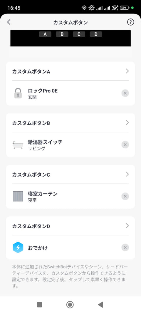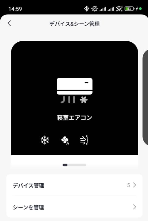 機器の登録が完了すると、「デバイス&シーン管理」の画面に機器が一覧表示されます。一覧表示から登録した機器を選択すると、機器によってはSwitchBot ハブ3の操作インターフェースをカスタマイズできます。