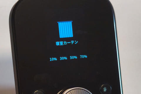 SwitchBot カーテン3の場合、「ON」ボタンで全開、「OFF」ボタンで全閉できます。そのほか、4つのタッチボタンにそれぞれ「10%」、「30%」、「50%」、「70%」が割り当てられており、カスタマイズできるようになっています。