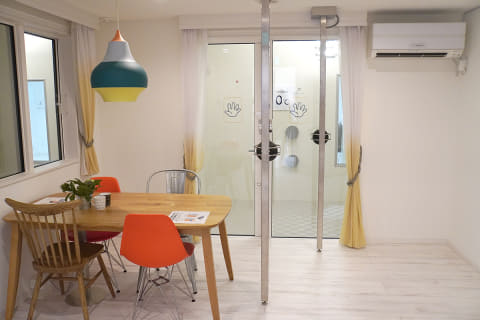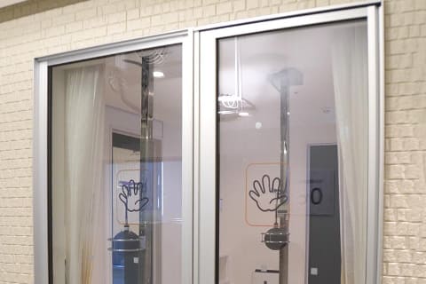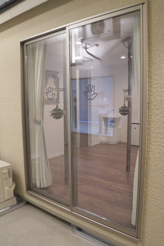 この部屋もサーモグラフィーでチェックしてみると、驚いたことに部屋全体がほぼ均一な黄色になっていました。窓も床面近くに少し青い部分があるものの、ほぼ全体が黄色に近い色。実際にガラス面に触ってみても冷たさは感じません。ガラスというより樹脂を触っているような感覚です。