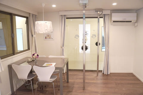 体験できるのは、1980年基準(断熱等級2)の「昔の家」、2016年基準(等級4)の「今の家」、そして等級6である「これからの家」の3タイプ。それぞれの部屋が、外気温0℃の空間内に設置されています。どの家も掃き出し窓があるリビングがあり、そのほか廊下とトイレが配置された、共通レイアウトです。また、リビングには設定20℃で運転するエアコンを1台設置しています。