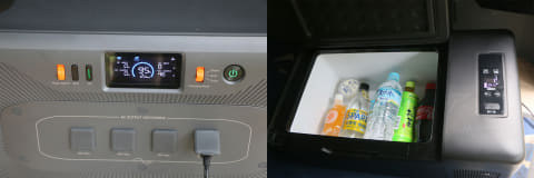 途中で食材や飲み物を購入し、ポータブルの冷蔵庫に収納。こちらには「Apex 300」から給電します。容量が大きいので、消費電力が多少大きくても安心感があります。