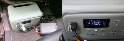 また、今回は車中泊旅というシーンに合わせて、自動車のバッテリーに接続してポータブル電源を急速で充電できるオルタネーター「Charger 1(チャージャーワン)」も用意。走行中にどれくらい充電できるかも試してみました。従来の車中泊旅ではシガーソケット経由での充電や、ソーラーパネルの活用が一般的でしたが、この製品を使うと最大560Wというシガーソケットの約6倍の高出力で充電することができるので、アウトドアシーンでのポータブル電源活用の幅を一気に広げてくれます。
