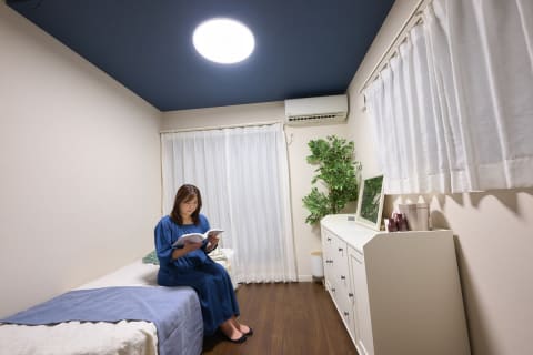 光の質もさることながら、光で空間が演出できるのもポイントです。特に気に入っているのが「常夜灯」モード。天井や壁をやわらかく照らし、まるで間接照明のような落ち着いた雰囲気を演出してくれて、眠りに入る前の時間がより心地よくなりました。