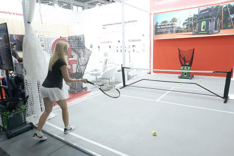 このロボットは足もとの4つのタイヤで移動します。内蔵するイメージセンサーとビジョンモデルAIにより、対面するテニスプレーヤーの動きを分析しながら「ボールを打ち返す(射出する)」ことができます。プレーヤーが打ったボールをネットでキャッチして、ボールを打ち返すことでラリーが成立します。プレーヤーの習熟レベルに合わせてボールを打ち返す速さも最大時速110kmまで調整できるそうです。