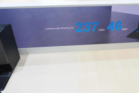 加えて、PowerBoostテクノロジーにより3分間の充電でバッテリーを6%回復させることで、掃除が中断する時間そのものが短くなります。こうした電源周りの機能強化によって、300m2までの連続使用もカバーするとのこと。ブースにはIFAの展示が始まってから、X11を連続駆動させている時間を表示しながら紹介していました。