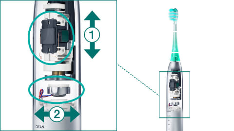 リニア音波振動(※3)とフロス音波振動(※3)のW音波振動(※1)で強力な歯垢除去力を実現!