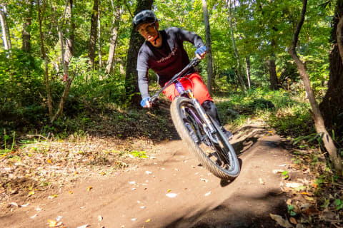 トレイルアドベンチャー・よこはまのようなトレイルコースは時間貸しですから、その限られた時間内にできるだけ走り込みたいもの。ただ、トレイルライドの一番のお楽しみ、コース後半に設けられているジャンプやバームのポイントまで行き着くには、そこまでの前半の上りをこなさなければならず、体力が削られてしまうのがネックです。つまり、たっぷり楽しむには「いかに疲労を抑えられるか」がカギになってきます。