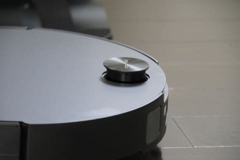 一般的に、このLDSレーザーはロボット掃除機の上部に飛び出る形で搭載されていますが、このため本体がどうしても高くなりがち。実際、市場にあるLDS搭載モデルの多くは高さ9cm以上、機種によっては10cmを超えることもあります。Saros 10も通常時は9.35cmですが、家具など狭い隙間に潜り込む時だけLDSが自動で本体に沈み込み、高さを7.98cmまで抑えられます。