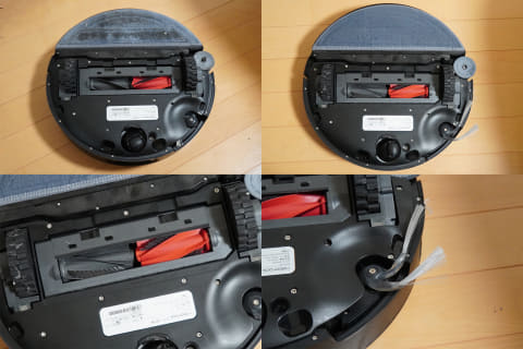 ところで、自動メンテナンス機能があっても、ロボット掃除機は意外と「人の手でメンテナンス」しないといけない部分があります。よくあるのが、絡まった髪の毛の除去作業。筆者はかなりのロングヘアなので、普通のロボット掃除機だと比較的高頻度で絡まった髪を手でむしり取る作業が必要です。しかし、Saros 10は毎日のブラッシング時に髪をわざと床に落とすようにしても、1週間ずっと髪が絡まることがありませんでした。写真は7日間掃除したあとのブラシですが、髪がまったく絡まっていないのがわかります。