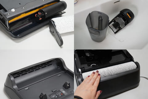 毛絡み問題が大きく軽減されている点は非常に魅力的ですが、水拭き掃除機にはもう1つ大きなハードルがあります。それが「掃除後の後片付け」です。水拭き掃除機は一定の層に人気を集めていますが、一方で興味はあっても手が伸びない人も多い家電。その理由のが掃除後のメンテナンスの手間です。水拭き掃除機は、濡れたローラーで床を掃除するため、掃除後のローラーを濡れたまま放置するとニオイや雑菌繁殖の原因に。そのため、多くの製品では掃除後に毎回汚水を捨てた後、ローラーを取り外し、洗って、しっかり乾かす必要がありました。この面倒のため、水拭き掃除機の使用が面倒になる人も多いのです。