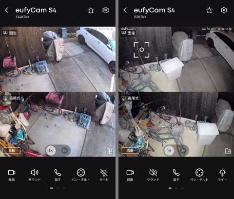 つまり、半固定の高解像度4Kカメラと、遠隔から好きなように動かせる2Kカメラが1つのハードウェアに収められ、その両方の映像を同時に確認、記録できるのがEufyCam S4の最大の特徴となっている。