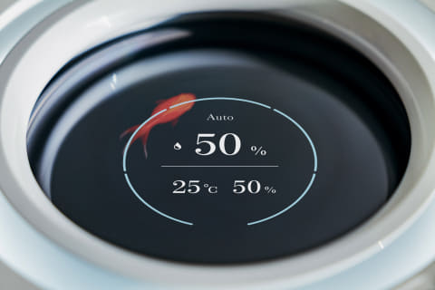 興味深いのは、壺というモチーフが外観だけでなく操作性やインターフェイスにも一貫して生かされている点。本体の開口部奥にディスプレイが現れる設計は、壺の内側をのぞくような視線の動きをそのまま操作体験として取りこんだもの。給水も、壺に水を注ぐように上からそのまま注ぐだけ。こういった、見た目と使いやすさが矛盾なく共存しているのもRainならではの体験といえます。