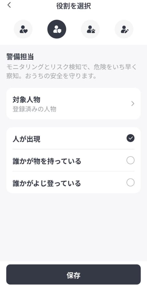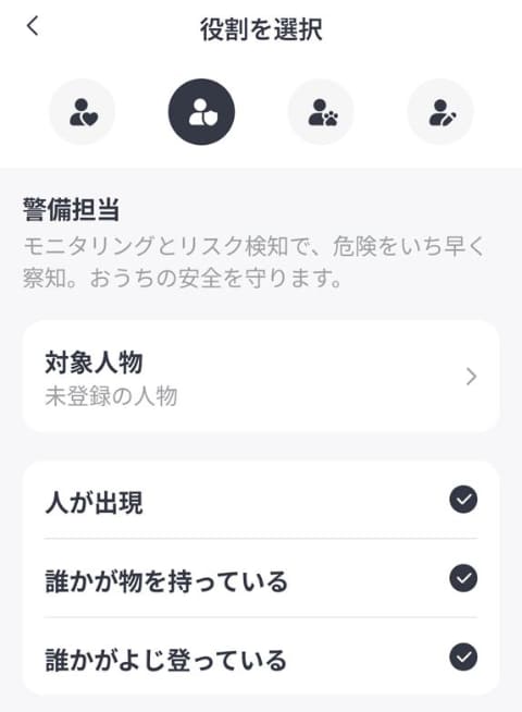 さらに人の顔を写真撮影して名前とともに登録しておけば、「人物」や「男性・女性」ではなく、登録したその人の名前で記述される。家族が帰宅したら、それが誰なのかを通知で知る、という使い方もできるし、反対に家族(登録した人)のときは何もせず、それ以外の不特定多数の人物のときだけ通知・記録する、といった使い方もできる。
