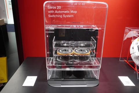 CESのブースでは、底面に搭載するフラットな形状なモップが微細に、そしてパワフルに振動する様子を、実機に触れながら確かめることができました。この機能があれば床にこびりついた汚れもキレイに落とせそうです。
