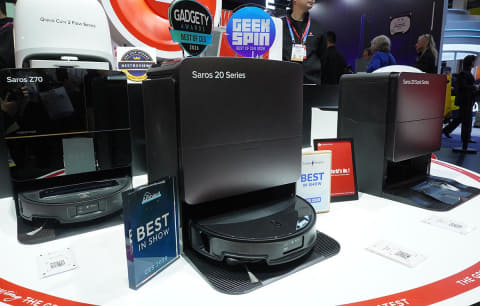 Saros 20シリーズの2モデルは、ともに本体の上部に搭載するセンサーを格納した時の高さを約7.98cmとして、テレビ台のような据え置き家具の脚の下のすき間にもスムーズに入り込めるデザインになっています。