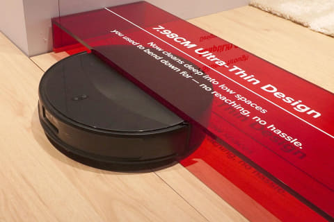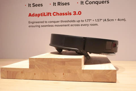 1段目が最大4.5cm、2段目が最大4cmのギャップを軽々と乗り越えるデモンストレーションを、CESの出展ブースの中で見せていました。古い日本家屋のような高い敷居がある家でも、スムーズに部屋間を移動しながら掃除をこなしてくれるため、今まで家の構造によってロボット掃除機の購入をためらっていた人にも、一つの後押しになりそうです。