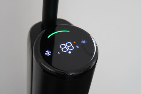 掃除後は、本体を充電ベースにセットしてセルフクリーニングボタンを押すと自動洗浄と自動乾燥を開始。最近の高機能水拭き掃除機はこの自動洗浄・乾燥機能を搭載したものも増えてきましたが、H15Sがユニークなのはブラシを「90℃の熱水」で洗浄できる点。油汚れはもちろん、これだけの高温ならブラシの除菌も期待できそう。乾燥時間も約30分となかなかスピーディなうえ、急いでいる場合は約5分の高速メンテナンスモードまで用意されています。