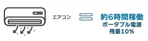 屋内と屋外の温度差によっても電力消費の仕方が変わってくるでしょうし、より省電力な最近のエアコンならもう少し稼働時間が延びることも考えられます。さらなる長時間稼働を目指すのであれば、拡張バッテリーパックの追加も検討したいところです。