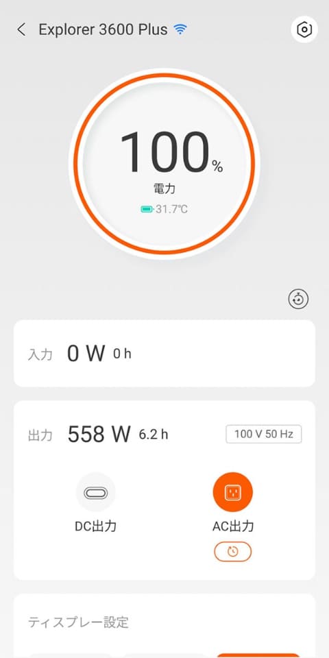 カスタム設定では、充電するときの電力を100W単位で調整できます。値を小さくすれば、少しずつ、ちょろちょろと充電できるわけです。日常的に1,500Wやそれ以上で連続的に使い続けることはまずありません。家庭の電源コンセントに常時つないでいるなら、放電分を補充できるくらいの小さな電力で時間をかけて充電しても大丈夫なはずです。