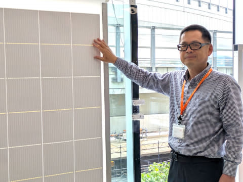 そんな、法人向けの受注販売が6月に始まったばかりの「PV(太陽光発電)ロールスクリーンシステム」を実際に見るべく、同社の研究開発拠点の1つにいる、開発者の石井久史さんを訪ねた。