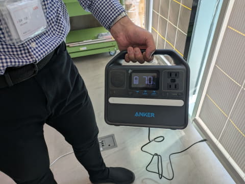 発電した電気を、モバイルバッテリーやポータブル電源に溜めておけば、スクリーンの近くでなくても、使いたい場所で電源を確保できる。また災害時に避難を要する場合にも、電源を持ち運べる。スクリーンにバッテリーを内蔵させるよりも、理にかなっているのだ。