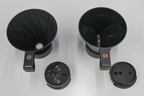 「NEW WAVE」モードと「CLASSIC」モードは、それぞれ専用の回転式ノズルとドリッパーが用意される。回転式ノズルの穴が「NEW WAVE」モードは3つ、「CLASSIC」モードは2つ開けられているのだが、驚くことに各穴ごとにお湯の落ち方が異なるのだ。