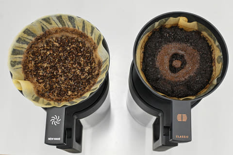 抽出されたコーヒーを飲ませてもらうと、これが実に美味しい。「NEW WAVE」モードはコロンビア、「CLASSIC」モードはマンデリンの豆で淹れてもらったのだが、それぞれに大きく味の違いが出ていた。豆が違うのだから味も違って当たり前、ではあるのだが、2種類の淹れ方により豆の個性がよく出ている、という点が通常のコーヒーメーカーとの大きな差だ。
