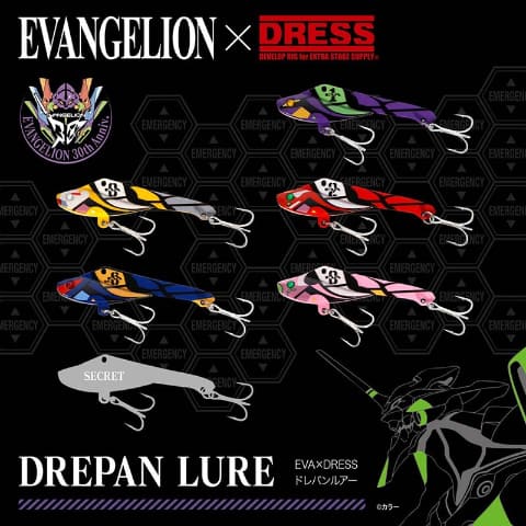 ライラクスのフィッシングギアブランド「DRESS(ドレス)」と、人気アニメ「ヱヴァンゲリヲン新劇場版」シリーズがコラボレーション。「魚類捕獲計画」と題し、特別仕様のコラボ釣具を展開している。