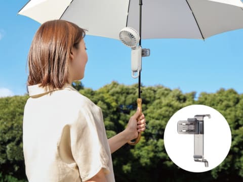 日傘にハンディファンを付けられる専用クリップ