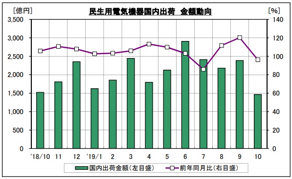2019年度上期の家電出荷額は1兆3,801億円、増税の影響もあり過去10年で最高額に ~JEMA