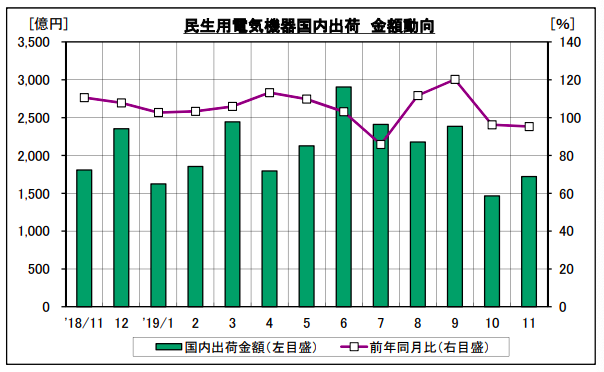 増税以降、家電の出荷額はマイナスが継続 ~エアコンは19.2%減