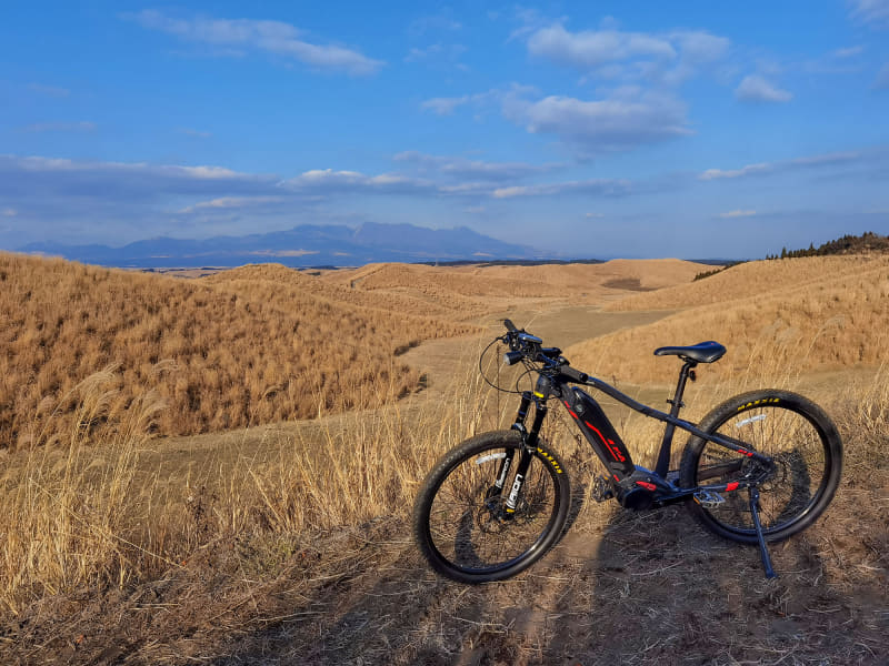 • パナソニックのe-MTBでプロ選手と阿蘇を巡るガイドツアー。特別なグランピング体験も