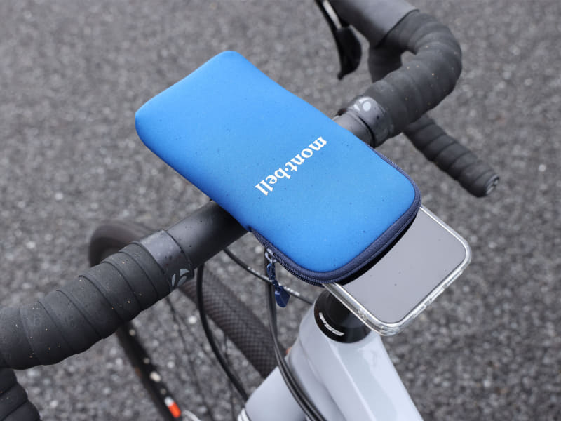 どんな自転車にも装着しやすいモンベルのヘッドポーチを購入。スマホや荷物も入れやすい