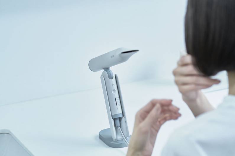 スタンドは310gと重量があるので、安定してセットできます。ハンズフリーになり両手が使えるので、ブラッシングやヘッドマッサージもラクに