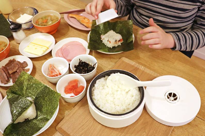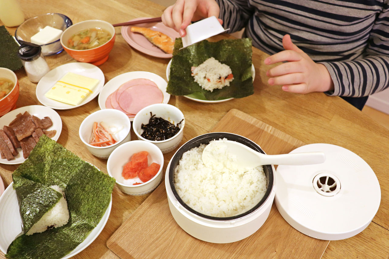 ある日の夕方、子どもに突然「おにぎらずが食べたい」と言われ、急きょ夕飯用に設定済みだった炊飯量をいつもより少し増やしてやわらかさも調整。減らしたり増やしたりといった炊飯量の調整が自由な利点を実感しました